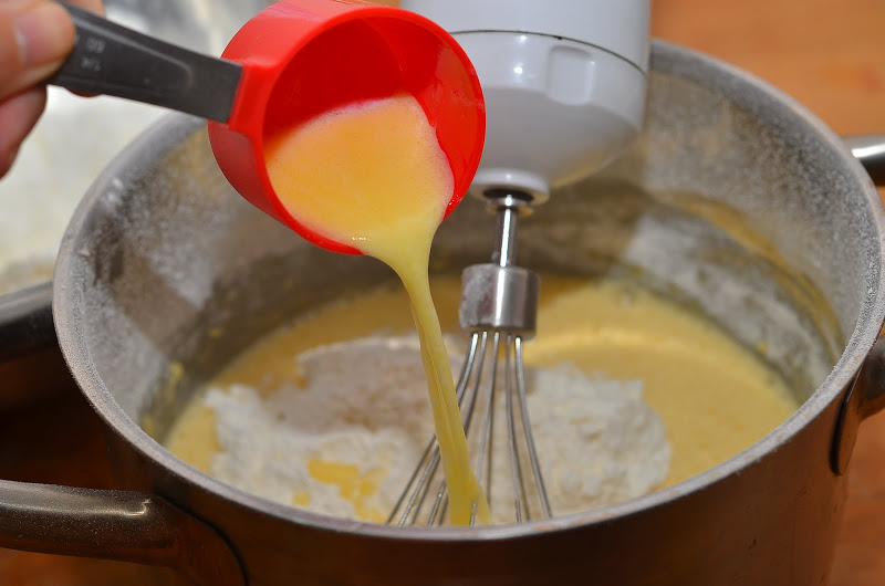 #3 В другой кастрюле, взбейте яйца с сахаром, пока смесь не станет однородной.